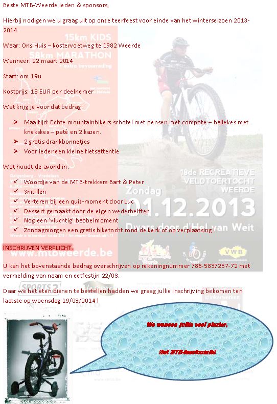 Beste MTB Weerde bikers,